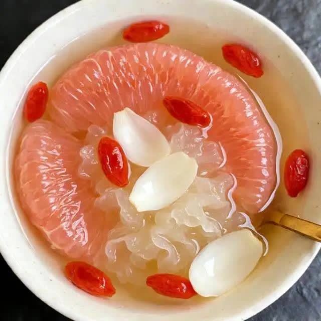 • 再放进剥好的柚子肉和冰糖,接着煮20分钟搅匀就行。为啥管用:柚子是清火高手,百合安神,银耳胶质丰富。这一碗下去,就像给肺洗了个澡,把痰和火气都冲走了,还能美容养颜。