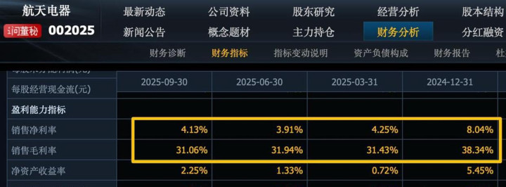 更关键的是,它的10Gbps星间激光通信技术,目前全球只有中国和美国掌握,这是构建卫星互联网的“高速公路”。 虽然技术垄断性极强,但它的毛利率是20%,净利率4%,这反映出核心电子配套领域的特点。