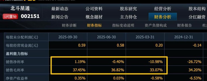 它的核心优势在芯片,它是北斗四代基带芯片唯一实现量产民企,在军用抗干扰模块市场拿下91%的份额,民用高精度芯片市场也占了一大半。 它的毛利率有37%,但净利率只有1.19%,这说明研发和市场投入巨大。