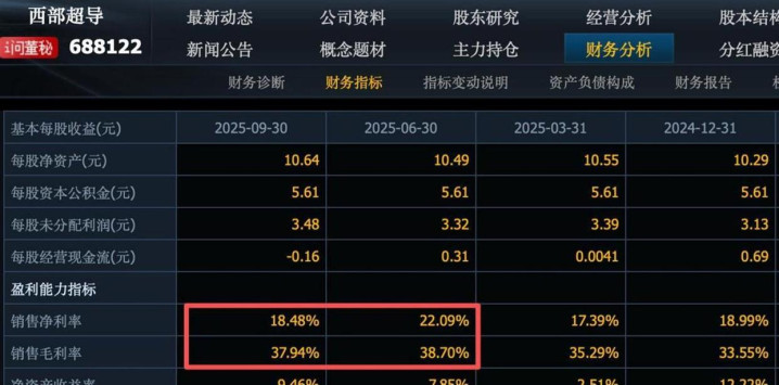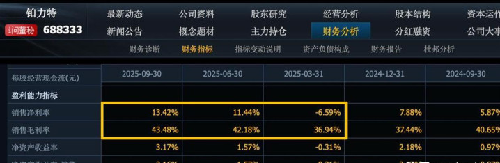 另一种颠覆传统的制造方式是3D打印。 铂力特用金属3D打印技术,直接把复杂的火箭发动机零部件“打印”出来。 它不仅是国内商业航天金属3D打印的绝对龙头,在民营火箭发动机部件市场占有率超过60%,更是全球唯一实现了火箭发动机推力室3D打印量产的企业。 它自研的耐高温钛合金粉末,打破了国外的材料垄断。 高技术的附加值体现在财务上,就是高达43%的毛利率,今年前三季度其净利润暴涨了235%。