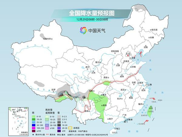 后天,黑龙江西北部、西藏南部和东部、川西高原南部、四川盆地南部等地部分地区有小到中雪或雨夹雪,其中,西藏东南部、四川盆地南部等地局地有大到暴雪。